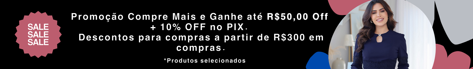 Aproveite a promoção Compre Mais e Ganhe até R$50,00 Off! Quanto mais você compra, maior o seu desconto: R$15 off nas compras a partir de R$300, R$25 off a partir de R$500, R$35 off a partir de R$700 e R$50 off nas compras acima de R$1.000. Descontos cumulativos com 10% OFF no PIX. Válido por tempo limitado!